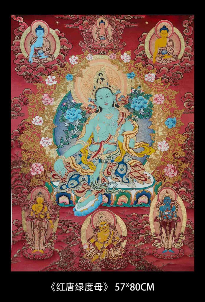 绿度母的信仰在西藏十分广泛,她被视为能够去除灾难、获得平安吉祥的女神,绿度母主要功德是护持女性和孩子的平安及健康,除此之外还有护持事业的功德,因此绿度母唐卡也被称为女性一生当中必请的唐卡。