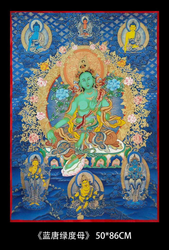 绿度母的信仰在西藏十分广泛,她被视为能够去除灾难、获得平安吉祥的女神,绿度母主要功德是护持女性和孩子的平安及健康,除此之外还有护持事业的功德,因此绿度母唐卡也被称为女性一生当中必请的唐卡。
